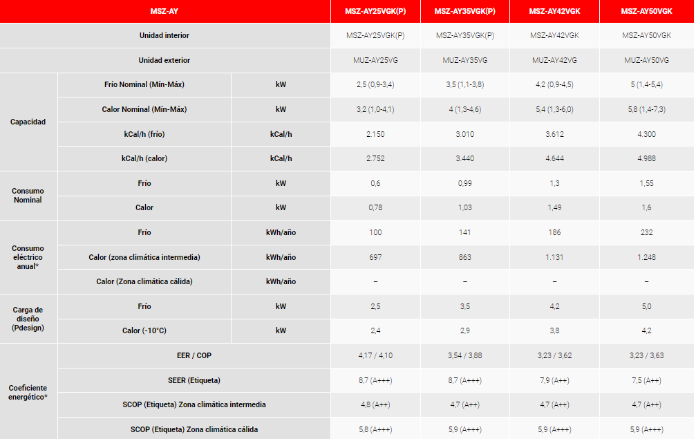 - Clase energética (frío/calor): A++/A++.